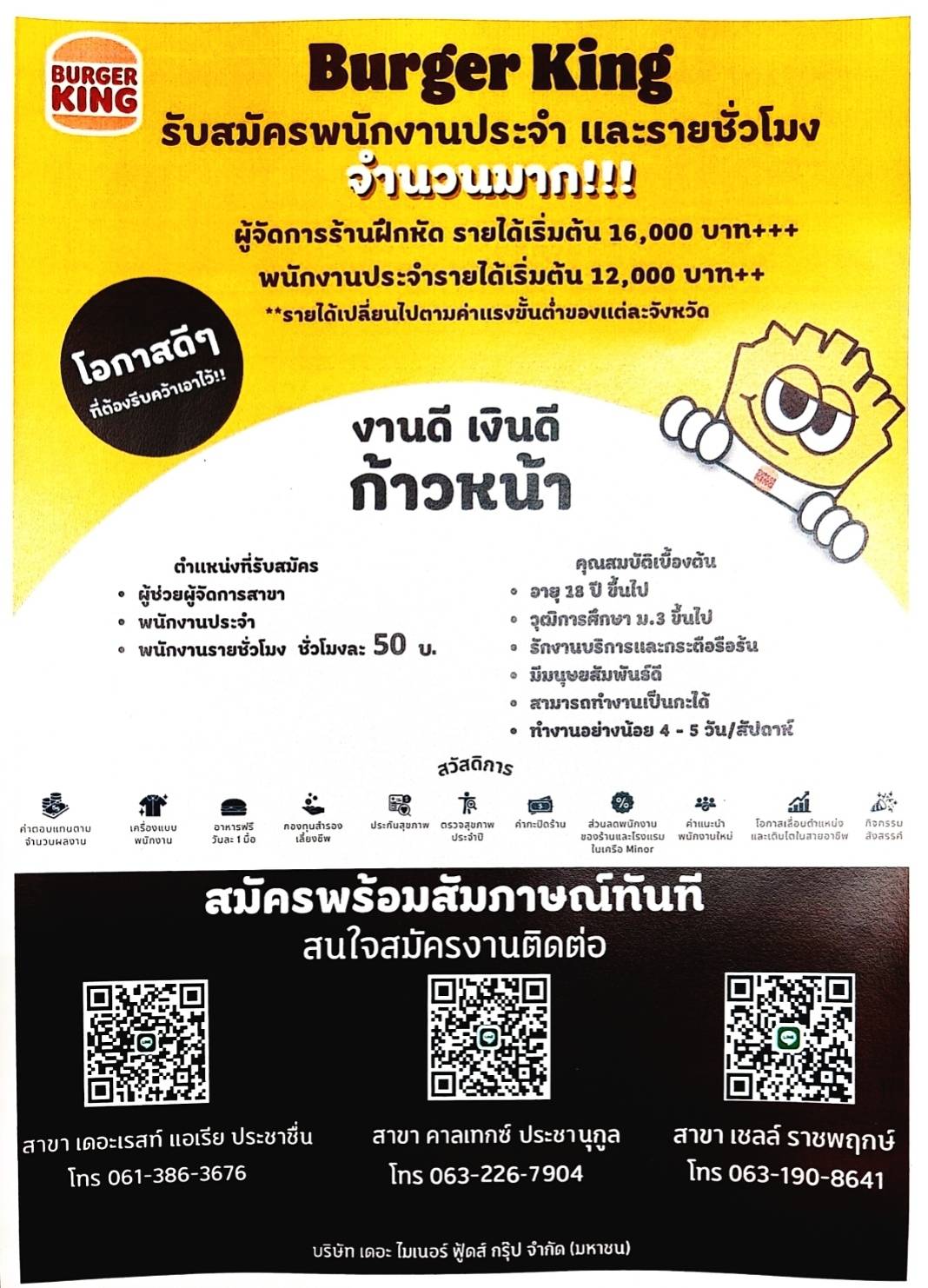 Burger King รับสมัครพนักงานประจำ และพนักงานรายชั่วโมง (จำนวนมาก)