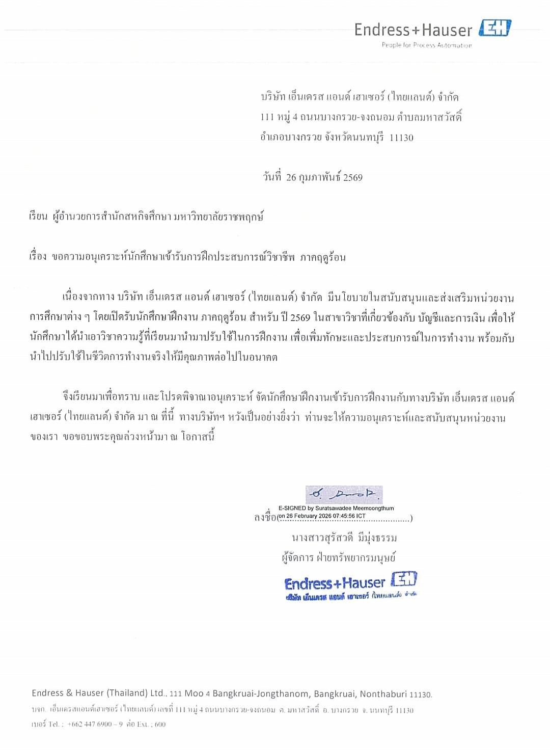 บริษัท เอ็นเดรส แอนด์ เฮาเซอร์ (ไทยแลนด์) จำกัด เปิดรับนิสิตฝึกปฏิบัติงาน สาขาวิชาการบัญชี