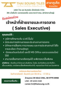 ตำแหน่ง เจ้าหน้าที่ฝ่ายขายและการตลาด (Sales Executive)